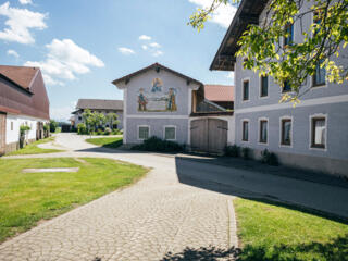 Zwei von diesen drei stattlichen Höfen werden von unseren direkten Nachbarn als aktive Landwirtschaften mit Milchviehhaltung bewirtschaftet. Hier schauen also auch die Kühe aus dem Stall, es brummt mal der Traktor vorbei und manchmal hat man auch den Duft der Landluft in der Nase.