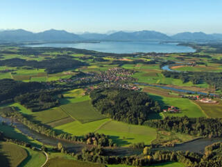 Unser Weiler Frühling (auf Bayrisch Frialing wie so mancher von Euch vielleicht schon erraten hat 😉) liegt auf einem Plateau über dem wunderschönen Alztal. Hier oben gibt es einen tollen rundum Bergblick und viel Ruhe. Da hierher nur kleine Straßen führen ist ausser dem Brummen von Traktoren und manchmal vorbeifahrender Autos hier (gottseidank) nicht viel los. Langweilig wird es trotzdem nicht, denn es gibt auch in der näheren Umgebung viele tolle Highlights und Geheimtipps fernab der bekannten Orte zu entdecken. Das Frialing liegt im nördlichen Chiemgau, der touristisch noch etwas weniger bekannt ist, dadurch aber vielleicht umso reizvoller. Die Landschaft ist geprägt von den Flüssen Alz und Traun, die aus dem Chiemsee und den Bergen kommend hier durchfließen, von vielen kleinen Seeen, und immer wieder wunderbaren Ausblicken auf die Alpenkette. Direkt ab dem Frialing könnt ihr ganz autofrei starten und wunderbare Spaziergänge, Wanderungen und Radtouren unternehmen. Viele der folgenden Orte könnt ihr ganz leicht erwandern, oder mit dem Rad erreichen.