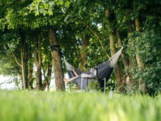 An diesem lauschigen Fleckchen unter dem leise rauschenden Blätterdach lässt es sich richtig gut abhängen.